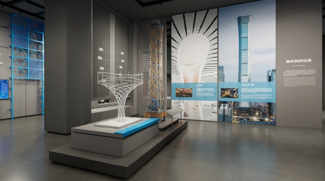 展廳設(shè)計的這些模型都是中國不同時期的高層建筑。最早1968年建造的廣州賓館,高86米,是當(dāng)時國內(nèi)規(guī)模最大的賓館;1985年建造的深圳國貿(mào)大廈,高160米,是國內(nèi)建成最早的超高層樓宇。1999年建成的上海金茂大廈高420米,為當(dāng)時國內(nèi)第一、亞洲第二、世界第三高樓。2018年建造的北京中信大廈,高528米,被譽為是華北第一高樓。以及2016年建造的上海中心大廈,高632米,是目前已建成的中國第一高樓。中國在超高層領(lǐng)域不斷刷新著城市的天際線,體現(xiàn)了中國建筑科技的水平和成就。